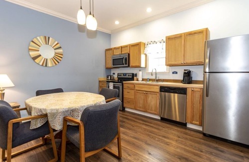 Nestled in a peaceful residential area, Hidden Villa provides off-street driveway parking. Inside, you’ll find an open-concept living room, dining area, and kitchen, creating a cozy and connected space. With hard surface floors, warm rugs, beachy décor, and soothing blue walls, the home feels welcoming. Comfortable furniture invites you to gather in the living room, whether to watch cable TV or browse local attractions with free Wi-Fi.