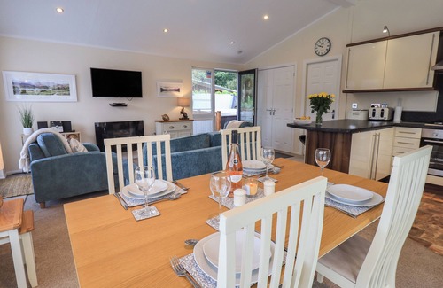 The living areas in this single-storey lodge consist of an open-plan kitchen, dining area and sitting area with gas oven and hob, microwave, fridge, freezer, dishwasher, electric fire, and TV. The bedrooms have TVs and include a double with en-suite, and a twin, serviced by a bathroom. Outside there is an enclosed veranda with furniture and a hot tub, and off-road parking for two cars. This is a pet-free and smoke-free property. You'll find a shop in 0.5 miles, a pub on-site, and Lake Windermere in 0.3 miles. WiFi, fuel, power, bed linen and towels are all included in the price. Bosun's Lodge is a wonderful base for a family escape to Cumbria. Note: There are steps to the exterior of the home. Note: The hot tub is only available between 10am-10pm. Note: WiFi is available through the park and may be intermittent at times; personal browsing only. Note: For use of the on-site facilities, such as the indoor swimming pool, a complex pass is required; these can be purchased from reception.