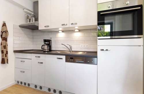 The apartment is fully furnished and offers a living/sleeping area (French bed with a 140 x 200 cm sleeping surface, TV), a hallway with a large built-in wardrobe, a fully equipped kitchen (stove with oven, microwave, refrigerator, dishwasher), as well as a bathroom with shower, toilet, and washbasin. A free parking space for your car is available. If necessary, there is also a sofa bed (140 x 200 cm) in the living/sleeping area as an additional sleeping space for two people (children). A baby cot and a high chair for toddlers are available in the house upon request.