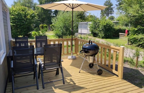 This cosy mobile home in Lauwersoog, Groningen, can accommodate up to 4 people and is ideal for holidaymakers who want to travel with their four-legged friend (medium size up to 60 cm). It has two bedrooms and two bathrooms - shower/WC separate, ensuring a comfortable and private stay for all guests. The property is located on the ground floor level and is detached, thus guaranteeing sufficient privacy.