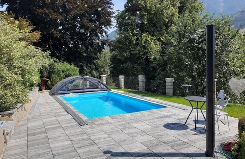 Yes, this Flattach apartment has a swimming pool. Check the Facility Overview section for details about the pool and other available facilities.