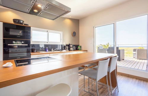 With its 180° sea view over the Steir beach, its generous volumes, its 800m² enclosed garden and its large terrace, this 115 m² house is ideal for vacations, just a stone's throw from the ocean.