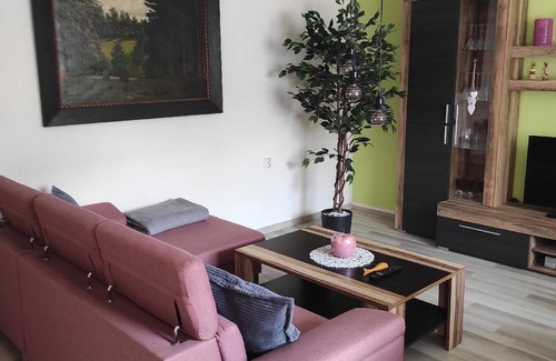 Our non-smoking holiday home is heated all year round and can accommodate 2-4 people. If required, we can also provide a cot for children up to 2 years old free of charge. There is a double bed in the bedroom. There is a sofa bed in the living room or bedroom for 2 more people. The bathroom is equipped with a washbasin, shower and toilet. Our small modern kitchen has an electric cooker with oven, sink, fridge, kettle, toaster and microwave. The living area is furnished with a corner sofa, parlour table and large dining table with 6 chairs. SAT-TV and radio are also available. Free WLAN access is available in all rooms!