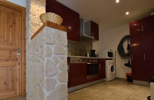 This holiday home (suitable for wheelchairs) is located at the top of the village of Varsberg and offers a beautiful view of the region. This house consists of 2 very neat holiday homes, each with its own entrance and the owner lives upstairs. If you want to go on a group holiday (4-8 people) you can even rent both holiday homes. at the same time! The holiday homes are the same, but have a mirrored layout. There are 2 clean and spacious bedrooms and a sofa in the living room. The bathroom is suitable and equipped for wheelchairs. From the house you have direct access to your terrace with barbecue and from the garden. You can walk in the woods without crossing the road. Horses are present in the neighboring parks.