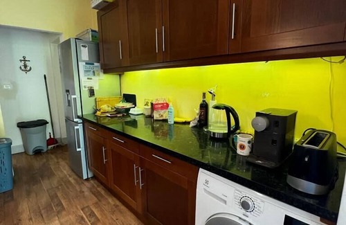 - Fully equipped kitchen opened to the living room with a dining table. This kitchen has dishwasher, Expresso coffee machine, kettle, oven, micro-wave, fridge with a freezer