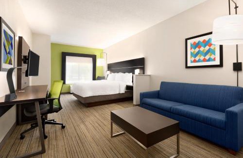 Located within 27 miles of Tinker Afb Golf Course, Holiday Inn Express Hotel & Suites Shawnee I-40 by IHG in Shawnee has a number of amenities including a fitness center, a shared lounge and a terrace. Featuring a seasonal outdoor swimming pool, the 3-star hotel has air-conditioned rooms with free WiFi, each with a private bathroom. The hotel has a hot tub and a 24-hour front desk. The rooms at the hotel come with a seating area and a TV with cable channels. Some rooms include a kitchenette with a fridge and a microwave. All guest rooms have a desk. Buffet and continental breakfast options are available at Holiday Inn Express Hotel & Suites Shawnee I-40 by IHG. Reed Conference Center is 30 miles from the accommodation, while Holiday Square is 30 miles from the property. Will Rogers World Airport is 38 miles away.