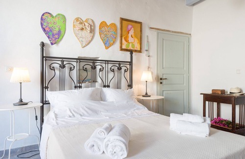This 2floor traditional house, dating from the late 19th century, is located in Ano Syros, the medieval town of the island of Syros. It is located right on the Markos Vamvakaris Square, 50 m. away from the Piazza, the main commercial street of the town, where the visitor can find restaurants, cafés, a grocery store and cozy handicrafts stores. There is a pharmacy close by the Kamara entrance.To be noted that no vehicles are allowed in Ano Syros.