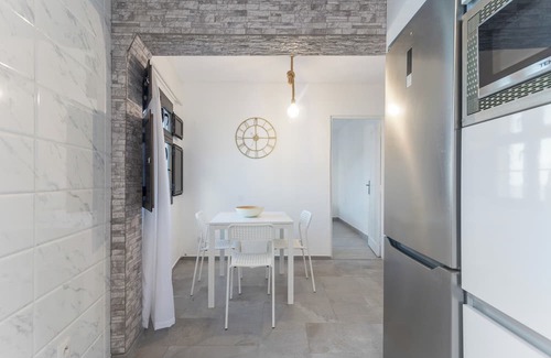 This apartment has been designed to offer comfort and functionality in every corner. Upon entering, a bright living-dining area with a Smart TV and sofa becomes the perfect spot to unwind after a day at the beach or exploring the island. The modern kitchen is fully equipped with everything you need to prepare home-cooked meals during your stay.