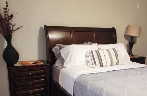 Welcome to Hook, Wine & Sinker! Cozy 1 large bedroom with 1 queen bed and 1 bath apartment. Rollaway beds available upon request. Amenities include: Free parking (with plenty of room for boats), free WIFI, 50" smart tv, fully equipped kitchen (stove, microwave, coffee pot, full size fridge), and washer/dryer. Located less than 1 mile from Johnson Creek boat ramp on Lake Texoma. Less than 2 miles from Roosevelt Bridge. 10 miles from Choctaw Casino.