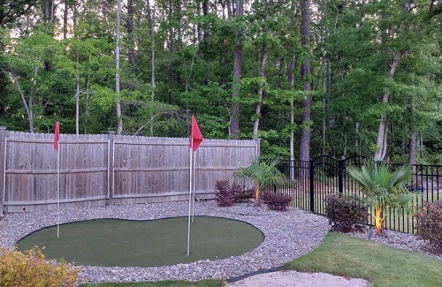Fell free to roast marshmallows at the built in fire-pit or hone your putting skills in our three hole putting green. Help yourself to board games located at the front door cabinet and for you corn-hole aficionados...we got you covered.