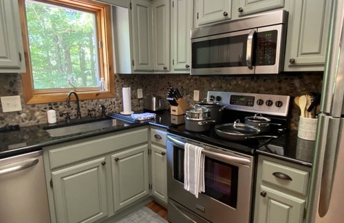 After a day of exploring, unwind in front of the cozy wood-burning fireplace, or enjoy the sights and sounds of nature from the expansive back deck overlooking the wood and a brand new hot tub (installed in Fall 2025) perfect for wildlife watching and stargazing under dark-sky conditions.