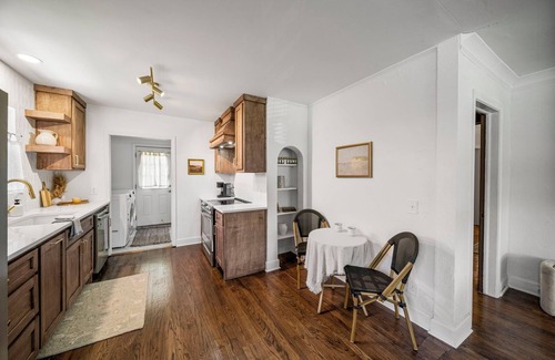 With art adorning the walls, our rich hardwood floors, and so much natural light from the windows, this home brings a unique and tasteful touch to Tulsa’s Midtown area. The cozy ambiance is due to our intentional, luxurious furnishings and amenities throughout each room. Both bedrooms feature large Smart TV’s and ample closet/storage space.