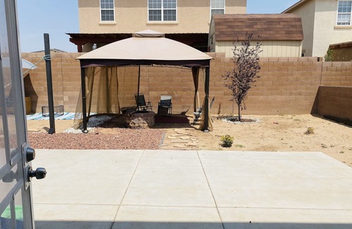Come and enjoy your stay at at this beautiful modern home located on the soutwest of Albuquerque, Nice quiet neighborhood, Sits on a 2,400 sq ft this home has 3 bd 2 1/2 ba, 2 living areas and 1 on the top floor, free WIfi , laundry room, a nice backyard so you can relax and enjoy the fire pit, and also a crocodile water slide for the kids to enjoy ( easy to set up) instructions will be given to you, there's also near by Parks, Shopping center, Restaurants! Super clean home everything is cleaned, washed, & sanitized!! Hope you enjoy your stay.