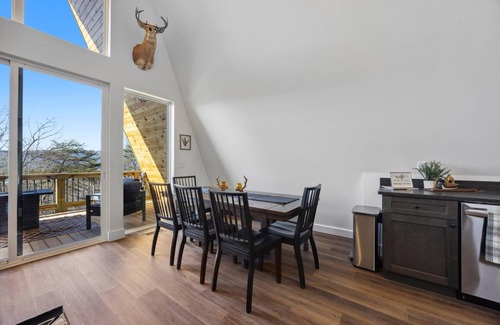 Hunters Ridge features a rustic woodsy design filled with taxidermy and was inspired to be mountain retreat for Hunter's to come back too. This spectacular A-Frame boasts phenomenal views of Lookout Mountain from every angle inside and outside of the home.This property has an open concept floor plan with wood tongue and groove vaulted ceilings which adds lots of airy natural light throughout the home. This very spacious home has 3 Bedrooms, 3 Bathrooms and easily sleeps 10 people with the NEW addition of GOATS! (read more below) Hunters Ridge is 1 of our 6 new Alpine A-Frame cabins located on a bluff in Chattanooga Valley, Georgia.