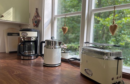 A living room, a fireplace, and a desk are featured at this vacation rental. Prepare a home-cooked meal in the kitchen, complete with an oven, a stovetop, and a refrigerator, as well as a coffee maker, cookware, and a toaster. And you can even travel light because you'll have a washing machine.