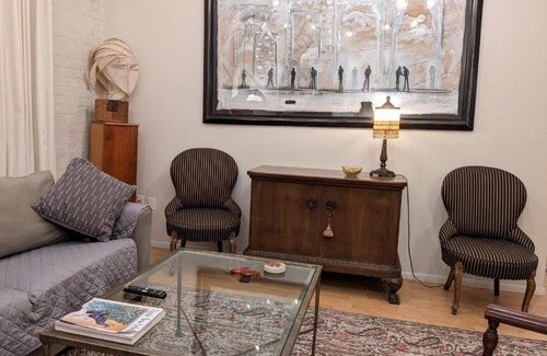 With 14 foot ceilings, large and functioning windows, central air/heat, comfortable queen bed with luxury cotton linens, full bath with tub/shower and all linens and toiletries supplied. A cook’s kitchen supplied with all basics and more, all new appliances and washer and dryer. Included are Wi-Fi , cable TV and large HD flat TV.