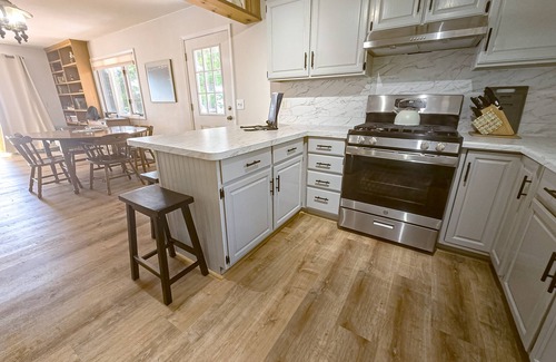 You’ll feel right at home in the sun-filled living areas, bursting with charming woodsy decor, cozy seating, and thoughtful finishes. Delight in snuggling up to stream your favorite movies in the Lakehouse or play board games at the dining table. A well-furnished outdoor living space invites you to have a summer barbecue and kick back on the deck, sharing some local brews and lots of laughs. After gathering for delicious meals created in the full kitchen, wander down to the dock to take an invigorating plunge, embark on a sunset kayaking session, or simply be serenaded by the sound of the waves. As the stars begin to appear, gather everyone around the fire pit to roast marshmallows, swap stories, and create unforgettable vacation memories. Please note that this property does not have A/C.