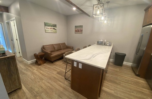 Wake up to gorgeous views of Kachemack Bay and multiple glaciers and the Homer Spit from this newly built home in a quiet neighborhood in Homer, Alaska. This is a 2-story home built in 2023, fist time rental for summer of 2024. The rental unit is on the first floor, it is a walk-out basement with a separate entrance. The windows in the front part of the apartment have spectacular views. There are no stairs in the rental area. The view from the king bedroom is incredible - mountains, glaciers, Homer Spit, Kachemack Bay. Black out shades darken the king bedroom on long summer days. The queen bedroom is perfect for summer nights, as this room does not have windows, allowing a restful sleep when the sun is still up late at night in the summer. The kitchen is ready for cooking, with all new stainless steel appliances, fridge/ freezer, full size stove with gas cooktop, microwave, toaster, and toaster oven, plates, silverware, glasses. A stackable washer/dryer is provided in the unit. Propane grill outside, great for grilling the fish you catch. The eat at bar has beautiful quartz countertops and comfy barstools. Bed linens, towels are provided. There is a new leather couch with a 43 inch smart TV mounted on the wall - bring your passwords for streaming services. Heat is via radiant heat in the floor, perfect for the cool mornings. The windows open to let the fresh Alaskan air in during the day. There is a separate entrance for the apartment, has outdoor lighting for night, and parking in the driveway in front of the house. Covered seating outside allows for dining outdoors to enjoy the view. The owner lives upstairs (works from home/ remotely 6AM-2PM) and is available for questions/ assistance. A max of 2 pets welcome, but pets are not to be left alone in the apartment unless they are crated. Pet fee applies. There is not a yard for guests to use for pets, but the neighborhood is great for dog walks. There is also a hiking trail as part of the neighborhood, which is pet friendly. Owner has dogs which stay upstairs, they do not have access to the downstairs apartment. The Homer Spit is less than 5 minute drive away, as are the beaches. The neighborhood is on the bike/ walking path which leads through the town of Homer and to the Spit. The location is great, centrally located within city limits. There is hiking, and water taxis which will take you to Kachemack State Park. Other activities are salmon and halibut fishing, bear viewing trips, strolling along the Homer Spit, walking on the beach, and many photography opportunities in beautiful Homer and the wildlife which make this area their home. And the food - the restaurants in Homer offer some of the most delicious food anywhere!