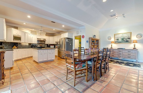 When you enter this fabulous home, you will discover a colorful living area furnished with comfortable sofas and chairs throughout, creating a fantastic spot to wind down, chat, and plan all of your next adventures. A cozy family room can be found nearby, offering a welcoming place to enjoy a fun TV show or read a favorite book. Prepare delicious treats and meals in the spacious eat-in kitchen, which has been appointed with all the essentials to whip up anything that comes to mind. Find stainless steel appliances, three coffee makers, a convection oven, and a dishwasher. You can dine here or in the formal dining room. Laundry will be a breeze thanks to the washer/dryer on-site. The home offers a sunny back patio facing the water with plenty of comfy seating, including lounges where you can unwind and work on your tan as you take in the views. Three bedrooms can be found on the main level, including two primary suites, and a fourth bedroom can be located upstairs.