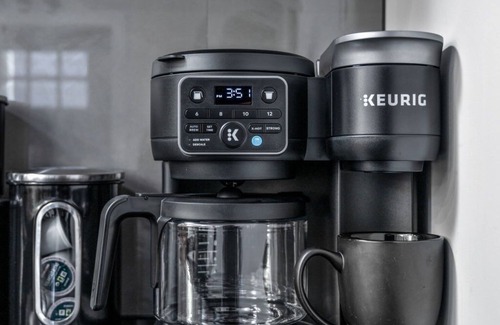 -Coffee and tea station with Keurig (pods & ground coffee), kettle, and tea packets