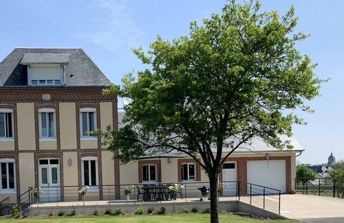 Ground floor: - large living room - dining room (TV) with - open kitchen (snack with 4 bar chairs, dishwasher, 3-burner induction hob, oven, microwave, fridge with 3 freezer drawers), - living room with TV, - 1 bedroom with 1 double bed 140x190cm, - wc accessible to people with reduced mobility (help bar), - bathroom accessible to people with reduced mobility: walk-in shower with seat, 1 basin, - laundry room with washing machine, 1st floor: - 2 bedrooms with 1 double bed 140x190cm, - very small bathroom with wc (passage narrow between the shower and the washbasin), 2nd floor (attic): - 2 bedrooms with 1 double bed 140x190cm (including 1 with TV), - bathroom with wc, Baby equipment: cot with bars, travel cot, booster seat, high chair. If you need to bring your sheets: large fitted sheets 32 cm thick. Exteriors: Terrace with garden furniture, barbecue, sun loungers. 1 car garage. Electric gate. In the village, beautiful independent and comfortable house with large terrace and enclosed flower garden. Ping-pong table and table football in the garage. The cottage is ideally located near the sea and pretty seaside resorts like St Valéry en Caux and Veules-les-Roses. Animals welcome: only 1 animal per stay: medium-sized dogs. No cats. Rental charges not included in your rental: - heating (heat pump), - electricity (beyond 8 kwh/day according to meter reading), - sheets, - the cleaning fee (compulsory), - the tourist tax. bedroom(s) on the ground floor, enclosed garden, television, cot, bathroom (bath), Household linen, Internet connection, Private car park, Washing machine, Dishwasher, Linen rental, Cleaning fee, Terrace, Garage, Animals accepted, Microwave, Flat screen TV, Freezer, Garden furniture, Barbecue, Detached House. Option to be paid on site: Sheets for a double bed: €10. Unless stated, services such as cleaning, bed linen, towels etc. are not included in the price of this rental. If pets are allowed (information in the advertisement), charges may be applicable. Only equipment mentioned in this advertisement are present. Equipment not mentioned are not considered to be present.