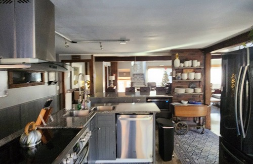 Bring the whole family to this great place with lots of room for fun. The Irish chalet is instantly welcoming! Soak up the modern and vintage charm of this remodeled 2700 square ft home! Flat screen televisions and a fireplace will keep you cozy. Open concept living with plenty of dining space for large families. This property is a 6 Bedroom, 2.5 bathroom private home with two decks and lots of privacy! 18 minutes to Pleasant Mountain, 32 miles to Sunday River, and 2 miles to lake swimming!