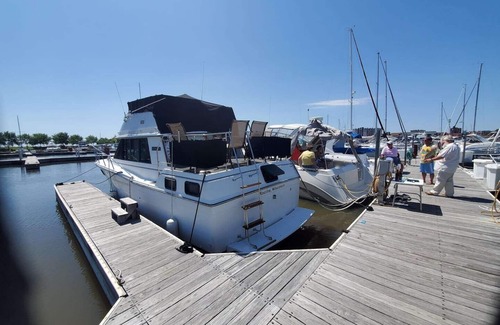 Sleeps up to 4- Enjoy Marina life at Reefpoint Marina aboard the "Irish Mist". Considered a RESORT marina. Close to the beach and on the water with this 32-foot 1988 Carver aft Cabin. Enjoy beautiful sunsets and sunrises, a cool lake breeze and star gazing at night. Marina amenities include a heated pool with two hot tubs, gas grills and a patio, a ships store, laundry facilities, a restaurant and bar, and super clean shower facilities. Rent daily, weekly, monthly, or all boating season!