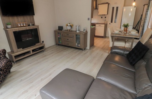 Jax Retreat, a single-storey caravan, consists of an open-plan living space including a kitchen with gas oven and hob, microwave, fridge/freezer, washing machine, and dishwasher, a dining room with a dining table for four guests, and a sitting room with a smart TV and electric fire. The bedrooms consist of a double with an en-suite walk-in shower, and a twin. There is a bathroom with bath, shower over, basin, heated towel rail, and WC. Outside, there is an enclosed side decking with furniture, a partly-enclosed side lawn with hot tub and furniture, plus off-road parking for one car. Two well-behaved dogs welcome. Sorry, no smoking. Shop 2.9 miles, pub 0.7 miles. WiFi, fuel, power, bed linen and towels are all included in the price. Make memories with a stay at Jax Retreat. Note: Although this is a single-storey property, there are steps up to the entrance. Note: The single beds are two ft 6. Note: Children's park and free golf course on site.