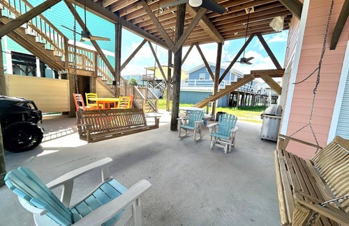 Beautiful 3 bedroom, 3 bath home just a short walk to the beach access. This camp also comes with access for a lighted fishing pier shared with the community subdivision. Perfect stay for families who want to enjoy the beach and day time/night time fishing. Covered area downstairs for hanging out and cooking. There is a bbq grill and boiling pot set up. You may have to fill the propane tank for use.