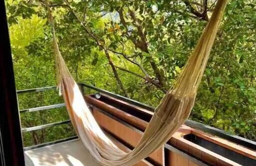 Fully equipped one-bedroom apartment. The room features a king bed with its full bedding, 2 night tables and a safe closet, a desk for work and a 43 "Smart TV. The master bedroom also has a private terrace with a hammock. The apartment has a full bathroom. The living space has a sofa bed that can accommodate 2 people, a 55”smart TV with cable TV. Kitchen with 2 fully equipped burners, full dishes, toaster, coffee maker, cooking utensils and breakfast bar. The living space has another private terrace with a living room for 2 people and pool views. The rental also includes two bicycles for guest use.