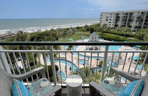 Just renovated! Amazing view of the ocean. This 1 bedroom / 1.5 bath oceanfront condo is located in the exclusive Litchfield by the Sea gated community. The views of the Atlantic Ocean are stunning from this 4th floor unit which also overlooks the pool and lazy river. Furnished with 2 Queen beds in the master, this condo sleeps up to 4 people. New wood flooring, bedding and living room furnishings, this condo is ready to be your next vacation getaway. The galley kitchen leads into the charming living room. The private balcony is a perfect spot to relax and enjoy the views and ocean breezes.