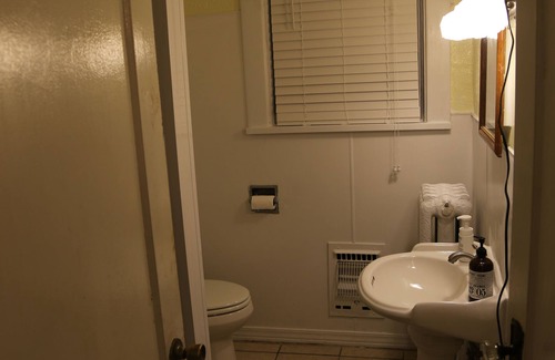 The apartment is the middle floor of a three level house. It is completely separate from the other levels by locked doors. It has private entrance with pin lock for easy/late check in and access.