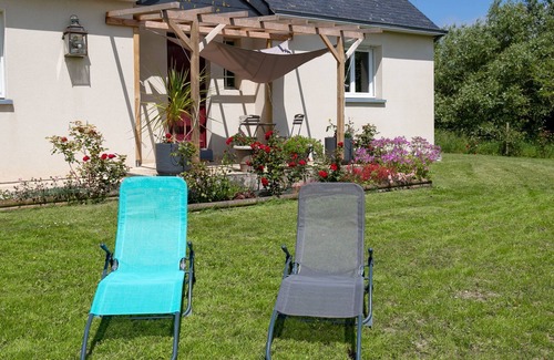 "Ker Jean", 3-room house 80 m2. Beautiful and cosy furnishings: living/dining room with open-hearth fireplace, dining table and satellite TV. Exit to the terrace. 1 room with 1 french bed (140 cm, length 190 cm). 1 room with 1 bed (140 cm, length 190 cm), 1 bunk beds (90 cm, length 190 cm). Open kitchen (1 hot plate, oven, dishwasher, 3 gas rings, toaster, kettle, microwave, freezer, electric coffee machine). Bath/shower, sep. WC. Electric heating. Terrace, south facing position. Terrace furniture, barbecue (portable), deck chairs (2). Facilities: washing machine, children's high chair, baby cot for up to 2 year olds. Internet (WiFi, free). Please note: non-smoking house. Smoke alarm. Bed layout is flexible. There are more sleeping options available than the maximum number of people allowed which may, however, not be exceeded. 29185 000077 HQ