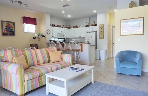 You can leave the parks early for a lunch break and sit in the living room and watch the kids swim in the private pool (HEATED for an ADDITIONAL $20.00 + tax PER DAY). Let us know if you want pool heat before booking. You can let the little ones nap while you relax out on the lanai and enjoy the sun before heading back to the parks for the evening activities. Three bedrooms, master with king bed, second room with queen bed and kids room with twin bunks and twin bed (kids room sleeps 3).