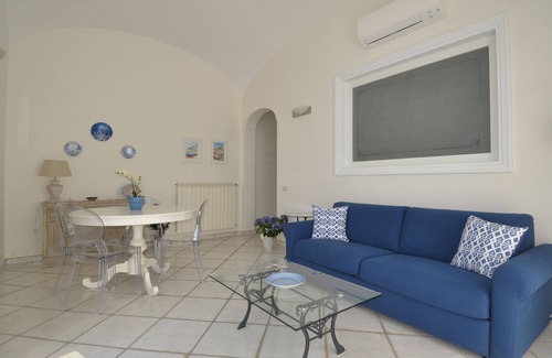 Apartment placed in an historical building, high-vault-ceilinged. Just renued May 2014. Stylish living room with two balcony with sea view and double sized sofa bed, one large bedroom with inside bathroom, one small bedroom with single bed. Both bedrooms have balcony con side sea vew. Fully equipped kitchen, dish-washer, washing machine, Air Conditioning, Internet wi-fi. Strategically placed to enjoy Amalfi Coast. Parking on request 15,00 €/day.