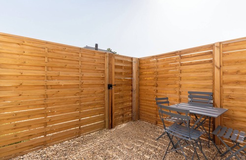 Relax on the deck or patio (enjoy the outdoor furniture!) of this 269-sq-ft apartment. For a change of scenery, come inside and enjoy the free WiFi and TV.