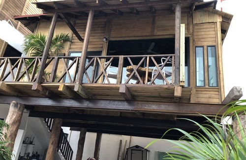 one block from the beach a few steps from the best restaurants craft shops and supermarket in the port, our wooden cabin is located in set of 7 apartments that chase poll,palapas,hammrocks and grills.