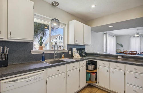 From popcorn to steak dinners, La Dolce Vita’s fully appointed kitchen does it all. With plenty of room for more than one cook, this kitchen features all-white appliances, ample counterspace, and a bevy of cookware and kitchen gadgets. Have a seat at the handy breakfast bar or serve meals buffet-style. Step out onto the extended balcony and savor a meal together in the fresh air and coastal breeze.