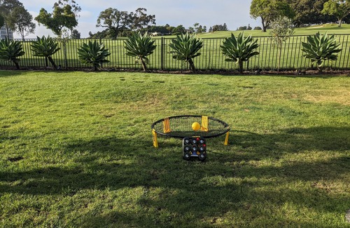 During the day your time can be filled with trips to the beach (Wind 'n Sea 1 mile away), shopping in La Jolla Village (less than 1 mile away), tennis (less than 1 mile away), lap swimming at the Coogan Athletic Center (5 minute walk - visit their website for more info), or stroll down to the cove (just over 1 mile away) and snorkel with the seals. Come home and sit in the covered patio, turn on the fire, pour a cocktail, fire up the Weber grill, start a game of bocce and watch the sunset colors over the golf course.