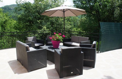 Single-storey villa: Entrance to living room with 1 sofa bed for 2 people (140x190). Open equipped kitchen. 1 Bedroom with 1 double bed (140x190). 2 Bedrooms with 2 single beds each (90x190). 2 Bathrooms, 1 of which with toilet and separate toilet. Terrace with furniture and barbecue & covered terrace (35 m²). Boules game, ping-pong table. Private/enclosed parking. Electric heating/air conditioning. Charges included. Baby cot and high chair available on request. Housekeeping on request. Paypal payment accepted. Beautiful independent villa for 7 people with a direct immersion into this beautiful property with oak, chestnut, and olive trees, as well as the common swimming pool, open all year, to be shared between the 4 Gîtes. 20 minutes from Nice, Bendejun offers the authenticity and charm of small, typical southern villages. Perched on the heights of the Paillon Valley between Contes and Coaraze, numerous trails will delight hikers and mountain bikers.