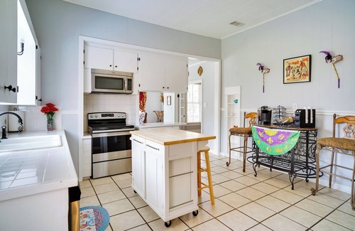 Built in the early 1900s, this classic home in Lake Charles, LA, home has all the warmth and charm of a historic Victorian manor while still offering the luxuries of modern living. With a full kitchen, an electric fireplace, a private patio, and a central location just down the road from the shore of the lake, this 3-bedroom, 2-bath home has it all! Spend your days exploring the surrounding museums, casinos, and outdoor spots before heading back to this unique getaway for a relaxing night in.
