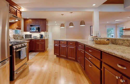 Step inside Lake Escape and be Welcomed by the centrally located DREAM Kitchen! A large kitchen, made for entertaining friends and family & fully updated with custom cherry wood cabinetry and beautiful expansive granite island, will have the chef of your group bursting with joy! A voluminous supply of cooking and eating ware allow you to feel like the “hostess with the mostess,” while making meals and memories with your favorite people. Don't forget that Finger Lakes wine goes with everything!