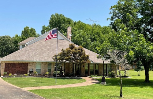 A unique water front property with a private 2-boat dock on 15 acres of well-manicured land with mowed grass, mature trees and wooded trees. A very relaxing environment in the peninsula - you can watch both sunrise and sunset! An excellent boat house and a fishing dock - fully lighted for night fishing right from the dock (you can catch catfish right from the dock). Get your fishing gear and fish in the best Bass fishing lakes in the country - Lake Fork! Canoe around in the lake, or bring your bikes/ATVs to ride around the property. Or have a relaxing candle light dinner on the fishing dock. This very well maintained, air conditioned 3 bedrooms (all on first floor) property is truly one of a kind! A ton of activities - fishing, basketball, badminton, *indoor pickle ball*, kids air-hockey, kids pool table, adults pool table, corn-hole, kayaking, kids ping pong or just ride around the property on your bicycles! 75" smart TV in the living room! Water filtration system installed for all your drinking water. Coffee lovers can have regular brewed coffee (coffee provided) or a Keurig machine - a few Keurig pods supplied with each trip! For the wine lovers, a bottle of Cabernet awaits you! Pecan trees, plums, an orchard with a variety of fruit trees on the property during the season.
