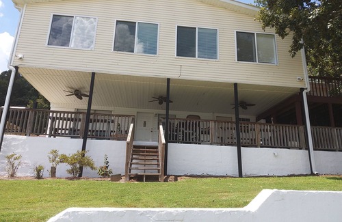 Lake Front Retreat! Quiet cottage Sleeps 10! Shoreline one of the best coves on Lake Logan Martin. Bring the Big Family Two bedrooms master w/Queen bed, 2nd has Full & Two Twin beds. Two Queen sleepers sofas upstairs and Queen sleeper sofa in bsmt. 2 Large living areas with open concept kitchen & dining. Fantastic Panoramic Water Views! Private dock for fishing, green lawn for games, fire pit under the stars, Deep water to tie onto boat ramp. Tons of fish, birds & other wildlife. Close to Restaurants, Bars, Coosa Queen Boat.