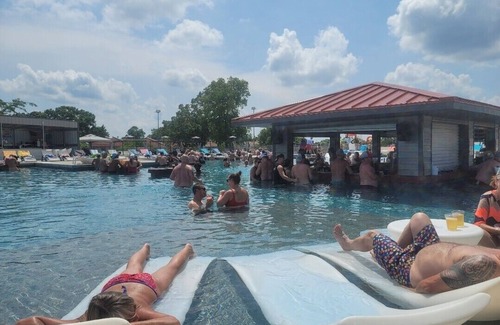 Resort-style living at our 2-bed, 2-bath condo at Lake of the Ozarks. Perfect for up to 6 people, our luxurious condo is equipped with comfortable couches and mattresses, a well-equipped kitchen, TVs in every room, wet bar, and board games. On-site, you'll have access to 6 outdoor pools, tennis and basketball courts, fishing lakes, discounted golf, and more. The largest swim-up bar in the Midwest is just yards away, and the Strip is a short drive. We allow up to 2 dogs. Book your stay today.