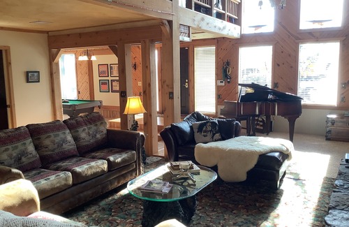 Spacious lodge themed home with views of Grand Lake. Close to Grove with easy access to shopping, marina, and area attractions including brand new mini golf course. Master bedroom downstairs with 3 bedrooms upstairs. Game room with pool table, formal dining, baby grand piano, and outside covered patio. Fully equipped kitchen and laundry room.