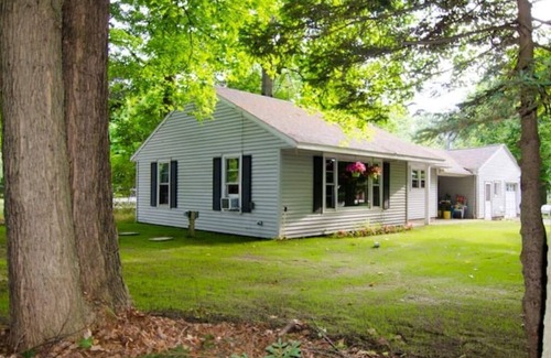 Peaceful home in the woods. This 2 bedroom cottage is is tucked behind the yellow lake house and has views of woods from the house and views of Lake Michigan at the back of the property. There is free beach access 1/2 mile down the road and state park access within 3-5 miles. It is close to several lighthouses, golf, entertainment, bike/hiking trails. Owner lives at back of property in the yellow house. Sorry, due to allergies this is a no pet, non-smoking home. Absolutely no parties.