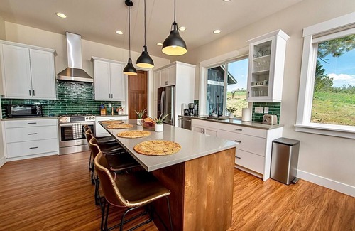 The home is nicely equipped with everything you’ll need for your stay with a large open kitchen, stunning dining table, comfortable beds and views from every room. Even the over-sized shower in the primary bedroom ensuite has incredible views! You'll even be able to watch wildlife while sitting on the large deck looking at the lake and mountain views.