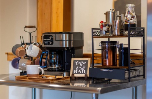 - Deluxe coffee bar with Peet`s K-cups, espresso, drip, hot chocolate, tea, honey sticks, sweeteners and fresh cream