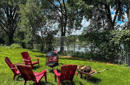 Escape to our charming home minutes from downtown. Enjoy a king bed in the master bedroom, queen beds in the lakefront and basement bedrooms. Outdoor dining on the deck overlooks the lake. Step out the back door to a beautiful lakefront walking path. Ideal for Blaine Sports Complex (12 min drive) and Twins games via nearby bus stop. WiFi, AC, washer/dryer, and free parking included. Perfect for family getaways! (Not a swimming lake)